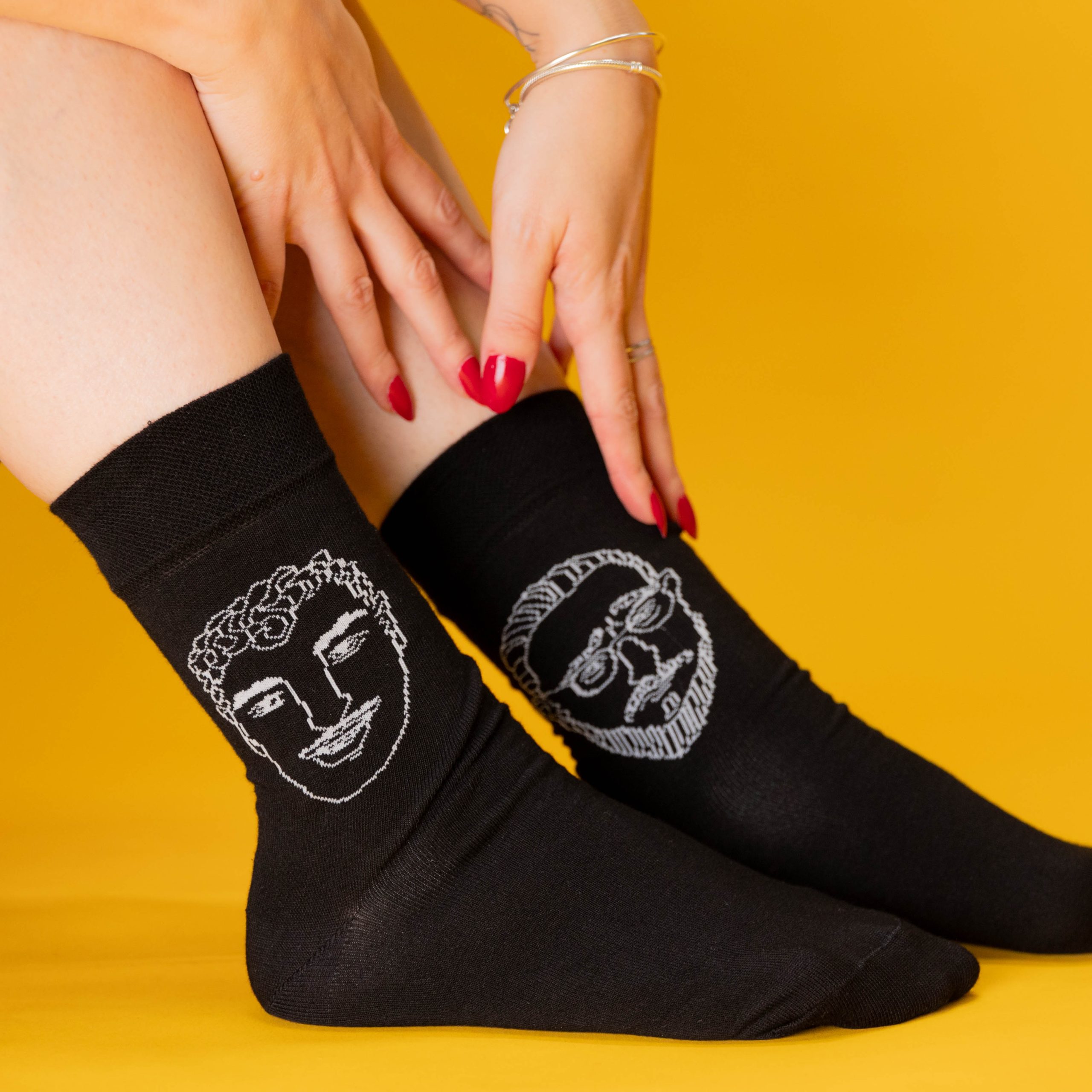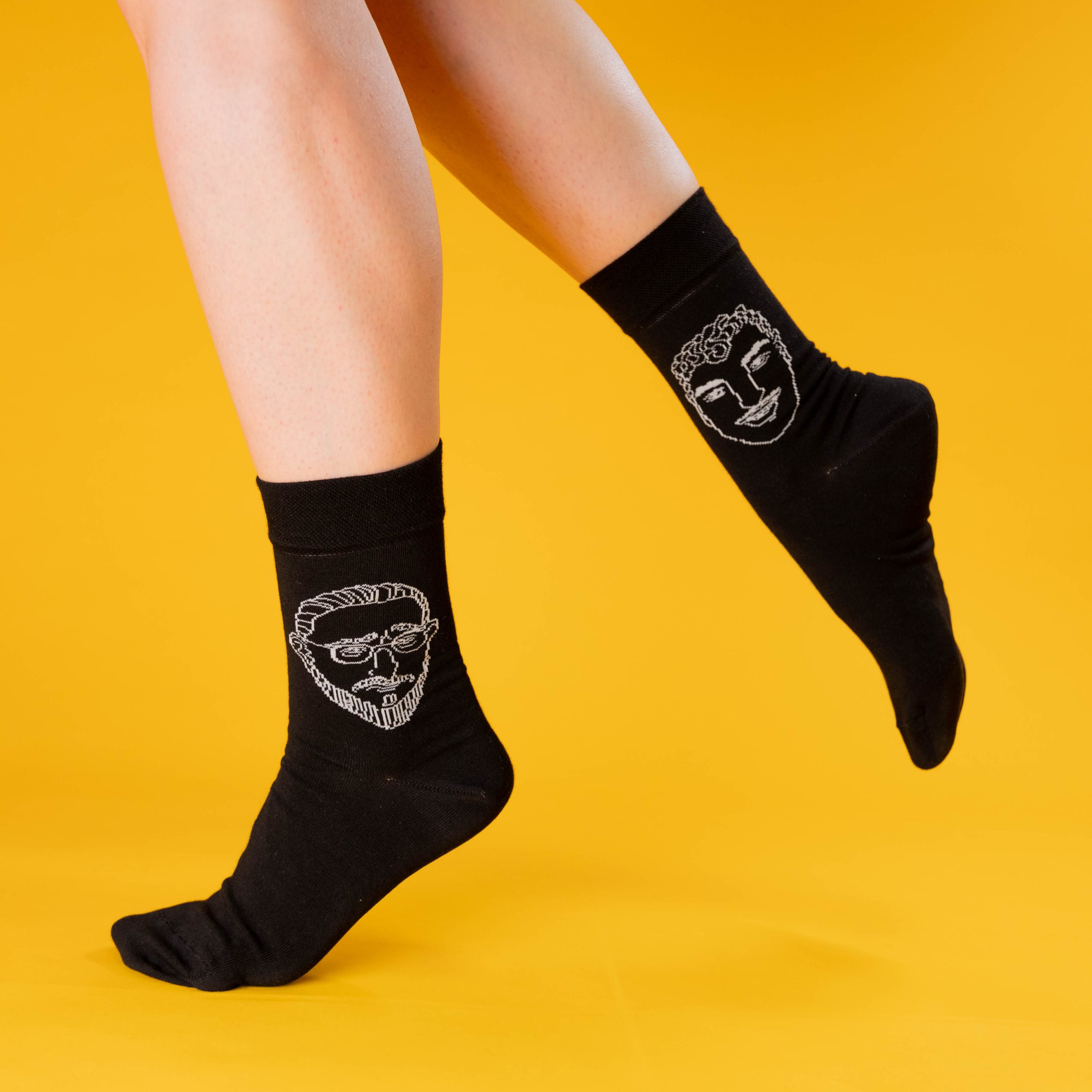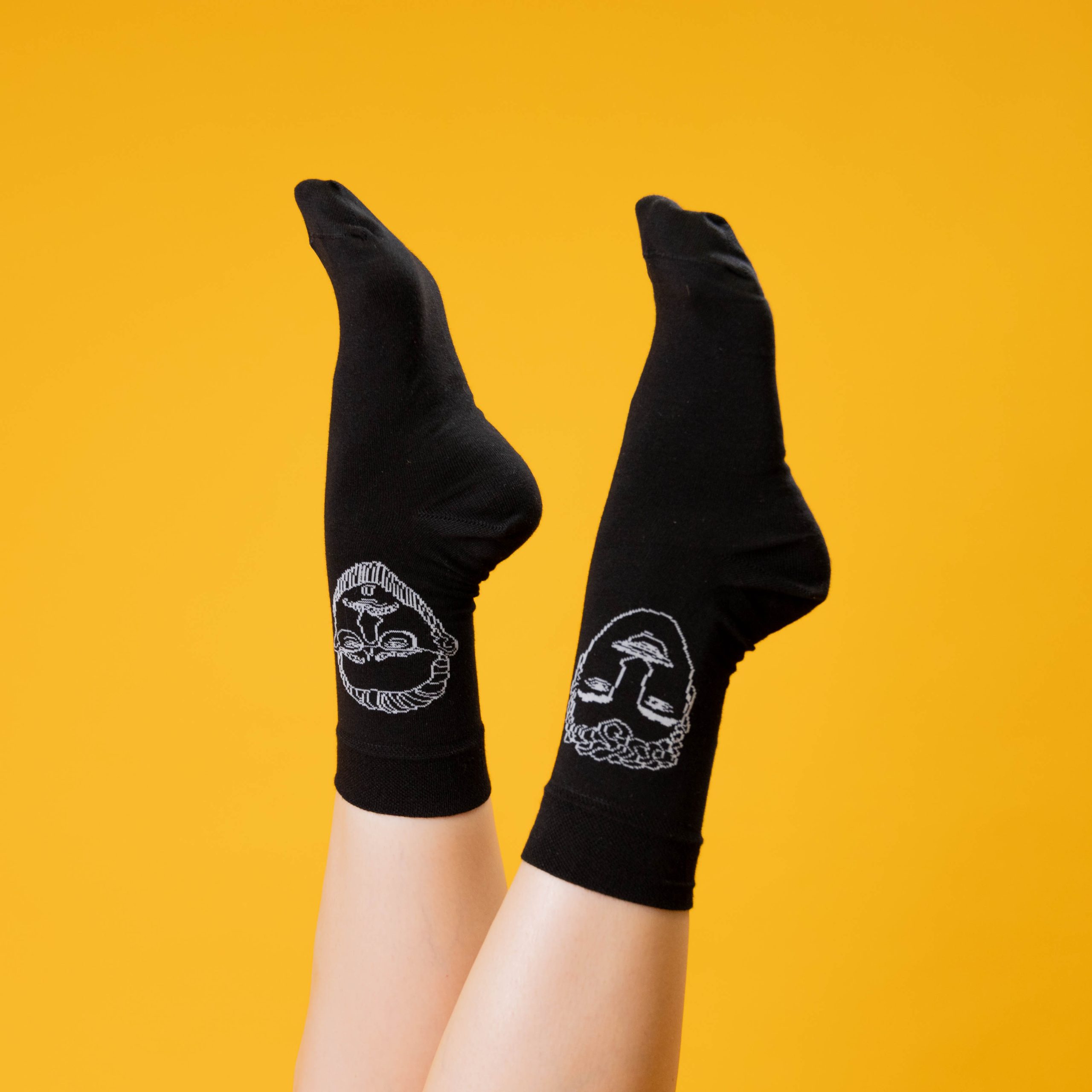 Ilustraciji na nogavicah so fan art in so delo Maruše Vehovar. Na vsaki nogavici je obraz enega od Fejmičev. Z fejmič nogavicami vaju bosta Gapi in Papi spremljala dobesedno na vsakem koraku.